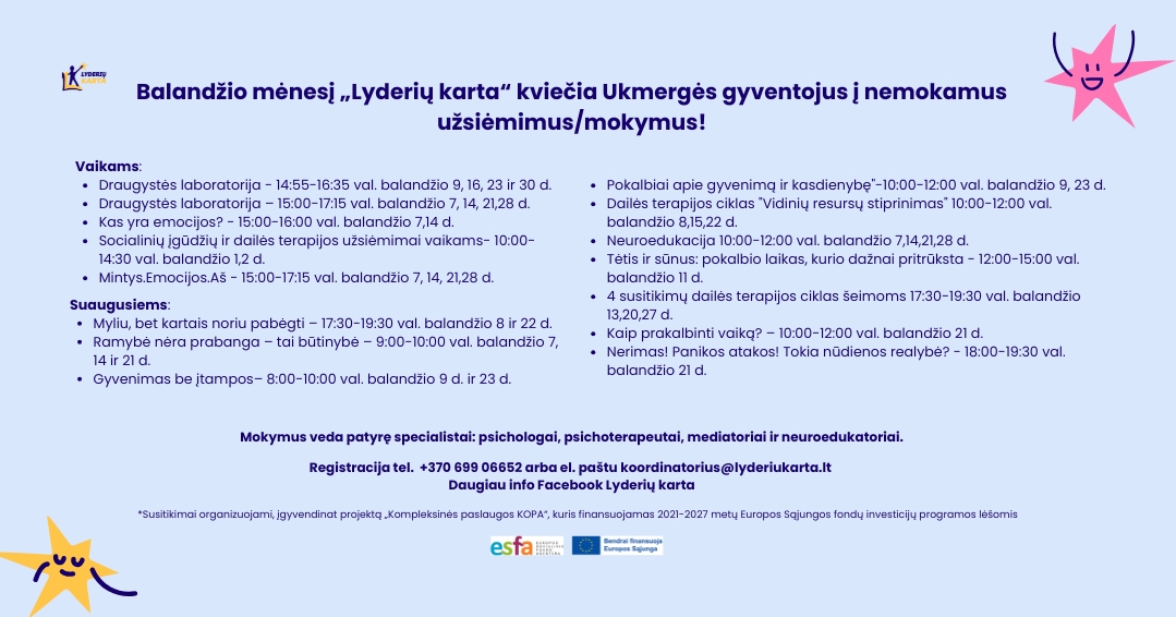 Balandžio mėnesio KOPA projekto Ukmergėje veiklos